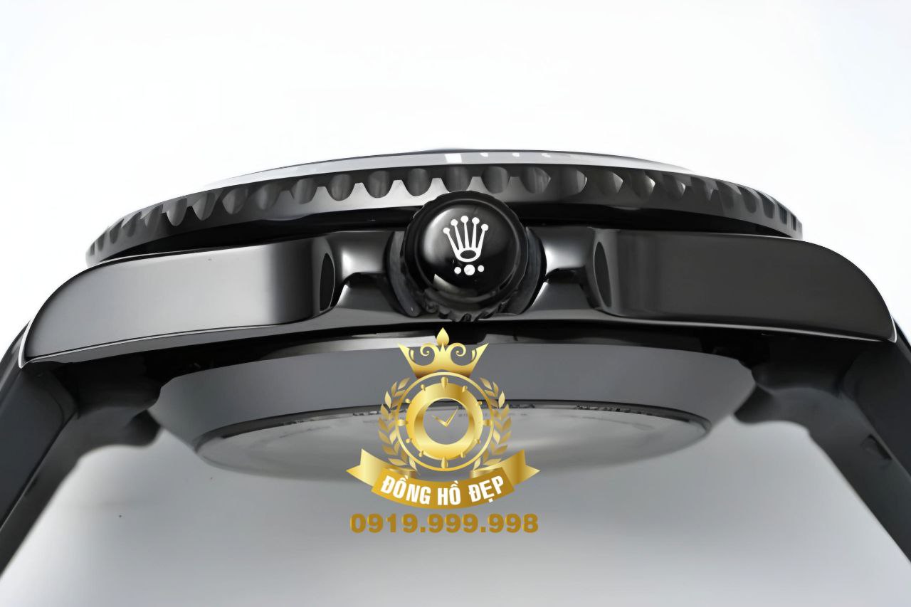 Đi sâu hơn vào thiết kế của Rolex Rep Submariner PhantomLab, chúng ta có khung vỏ đường kính 40mm, độ dày lên tới 16mm. Con số này thực tế đã vượt quá độ dày của nhiều đồng hồ Panerai. Chỉ nhìn thoáng qua, vỏ đồng hồ trông trong suốt hơn so với vòng bezel tròn. 4 vấu quá thực sự quá trong nên nhìn như không tồn tại, giúp toàn bộ đồng hồ trông tròn trịa hơn.