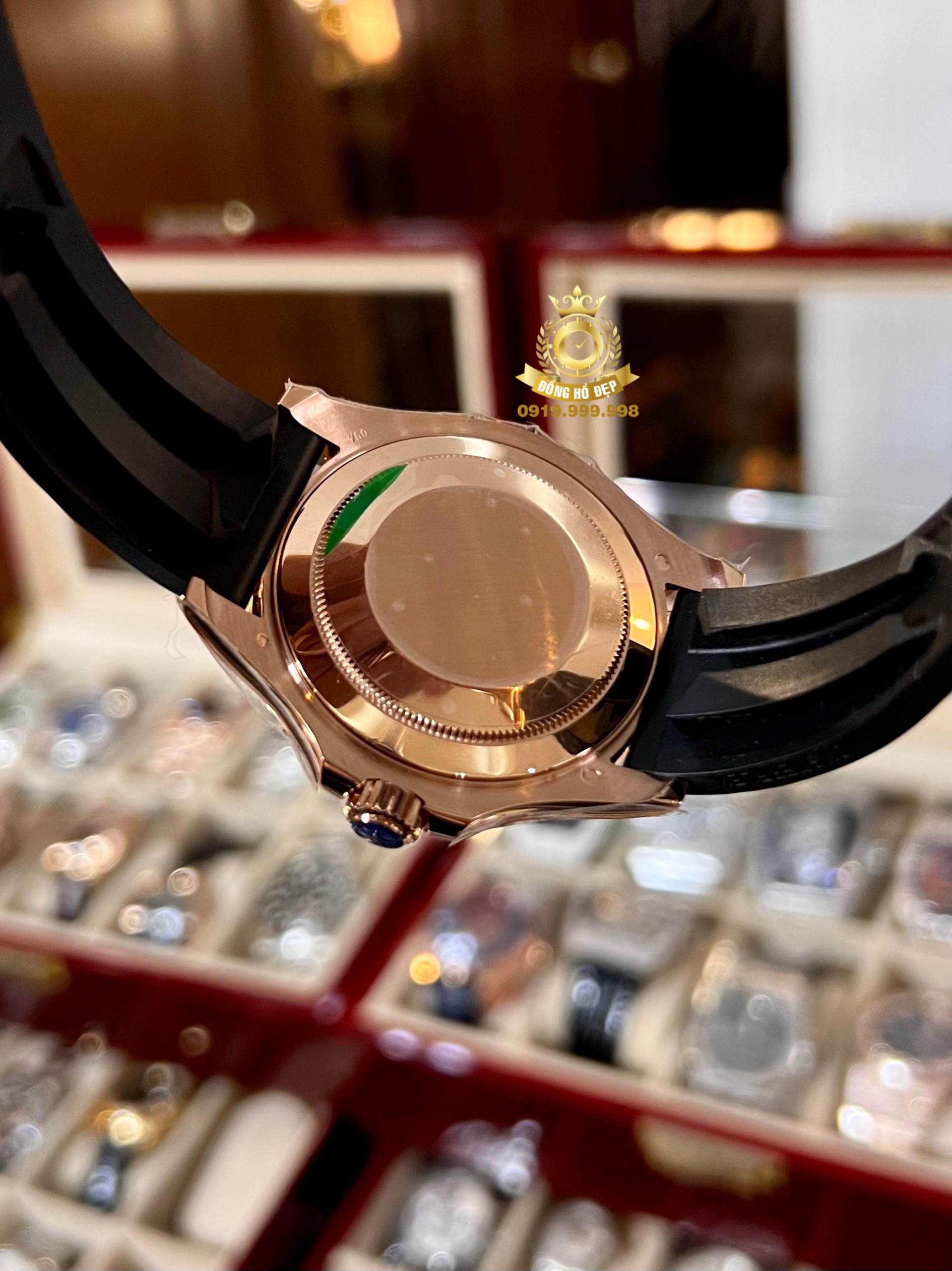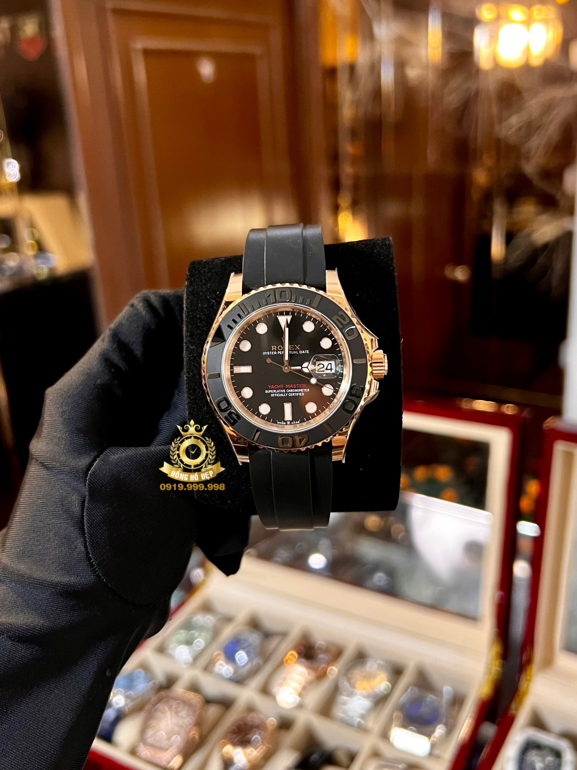 Thể thao, phóng khoáng và lịch lãm là những cụm từ được người hâm mộ ưu ái dành cho Rolex Yacht-Master 126655 – một phiên bản đồng hồ nam chuyên nghiệp dành riêng cho các vận động viên đua thuyền. Xuất hiện trong bộ vỏ vàng Everose tuyệt đẹp là hợp kim độc quyền sản xuất tại xưởng đúc riêng của hãng, với các trang bị tân tiến nhất của công nghệ chế tác đồng hồ nổi tiếng bậc nhất Thụy Sĩ, cỗ máy thời gian này đã gây thương nhớ cho biết bao tín đồ đồng hồ.