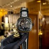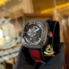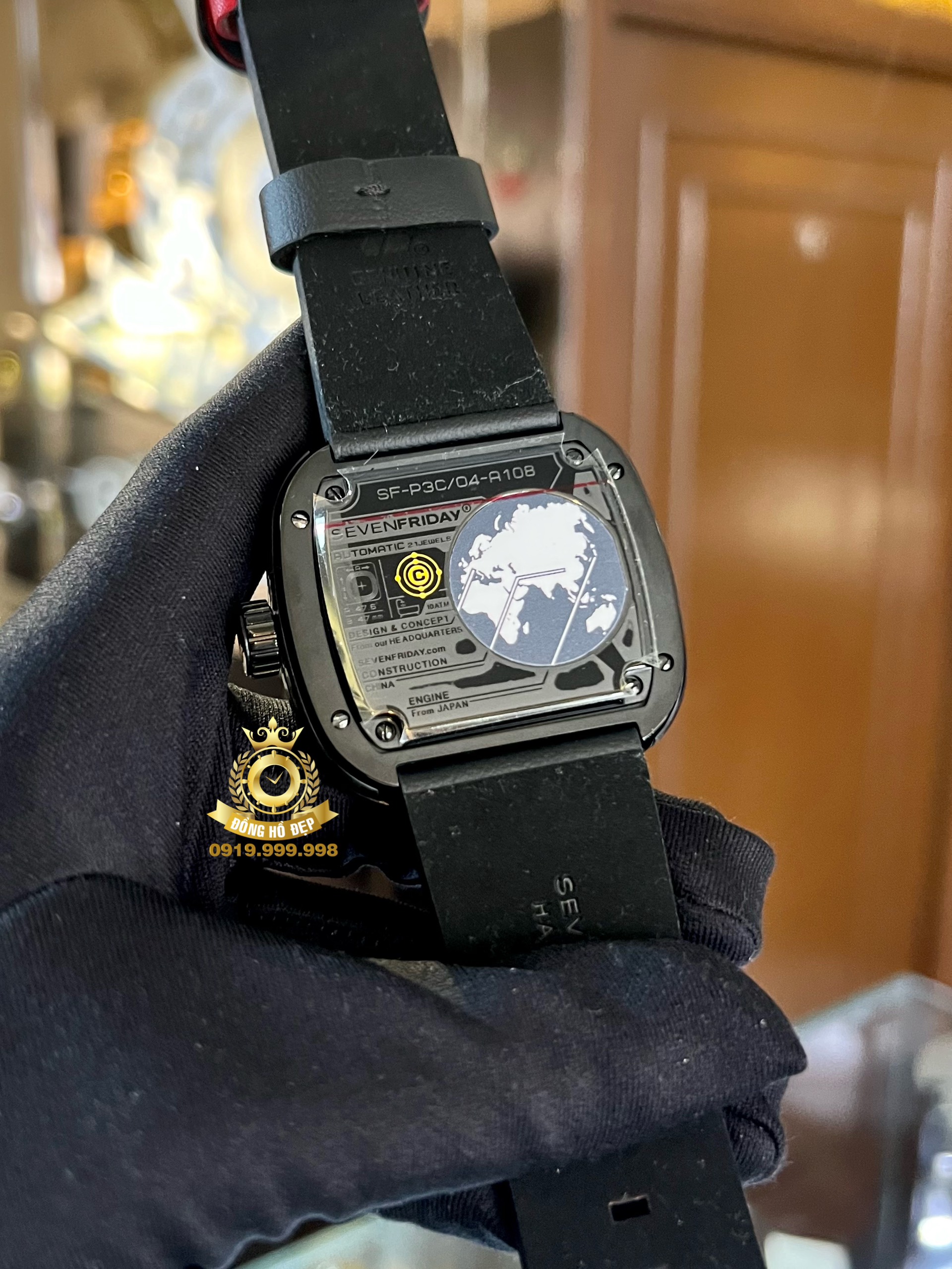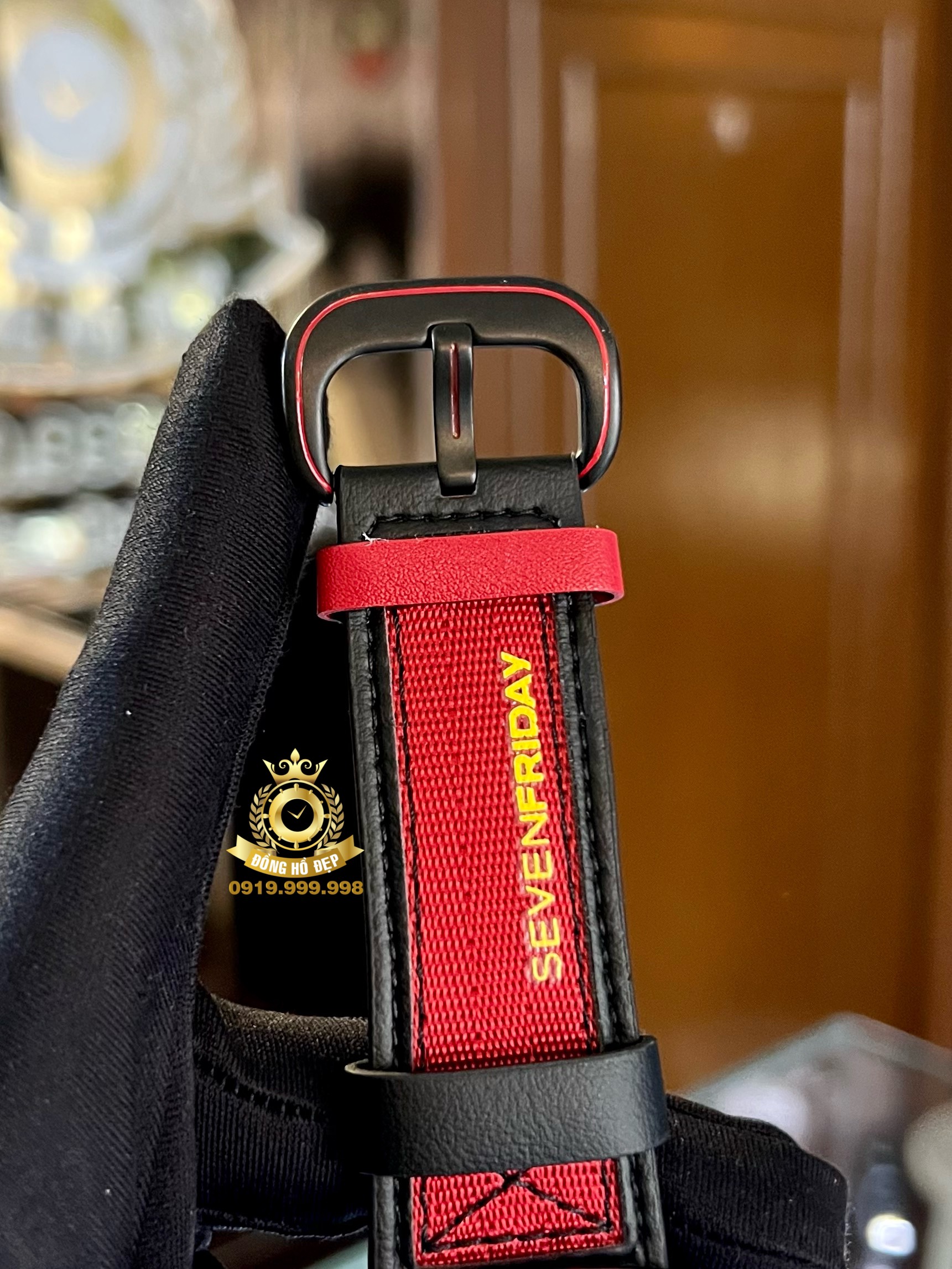 Sự kết hợp tuyệt vời giữa bộ vỏ từ carbon fiber, những điểm nhấn sắc đỏ trên vòng animation hay của núm crown chắc chắn sẽ làm những tín đồ của SevenFriday phải say đắm với thiết kế đặc biệt này.