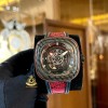 Sự kết hợp tuyệt vời giữa bộ vỏ từ carbon fiber, những điểm nhấn sắc đỏ trên vòng animation hay của núm crown chắc chắn sẽ làm những tín đồ của SevenFriday phải say đắm với thiết kế đặc biệt này.