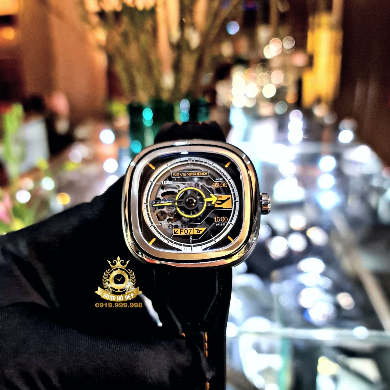 Lấy cảm hứng từ những chuyến ba, SevenFriday T3/02 “Runway 07”Với những chi tiết gợi nhớ đến các biển chỉ dẫn hay đường băng sân bay trên mặt số, T3/02 là một phiên bản đặc biệt mà SevenFriday muốn dành tặng tới các fan ưa thích dịch chuyển nhưng lại phải “ngồi nhà” trong mùa “Cô-Vy” năm ấy.  sở hữu các chi tiết khéo léo gợi lên bảng chỉ dẫn tại sân bay và đường băng cất hạ cánh dài tít tắp. Thoạt nhìn chiếc đồng hồ, bạn sẽ lập tức liên tưởng tới hình ảnh những cuộc trải nghiệm và khám phá thế giới đầy sắc màu!