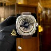 Tuy nhiên, W1/01 có lẽ là chiếc Essence đầu tiên trong gia đình sở hữu bảng màu đa dạng hơn thay vì tông đen – trắng quen thuộc. Trên mặt số tròn oversized là sự kết hợp hài hòa giữa màu trắng của thép, màu đen phủ nhám, ghi nòng súng, ghi rhodium nhám và những chi tiết điểm sắc vàng sống động.