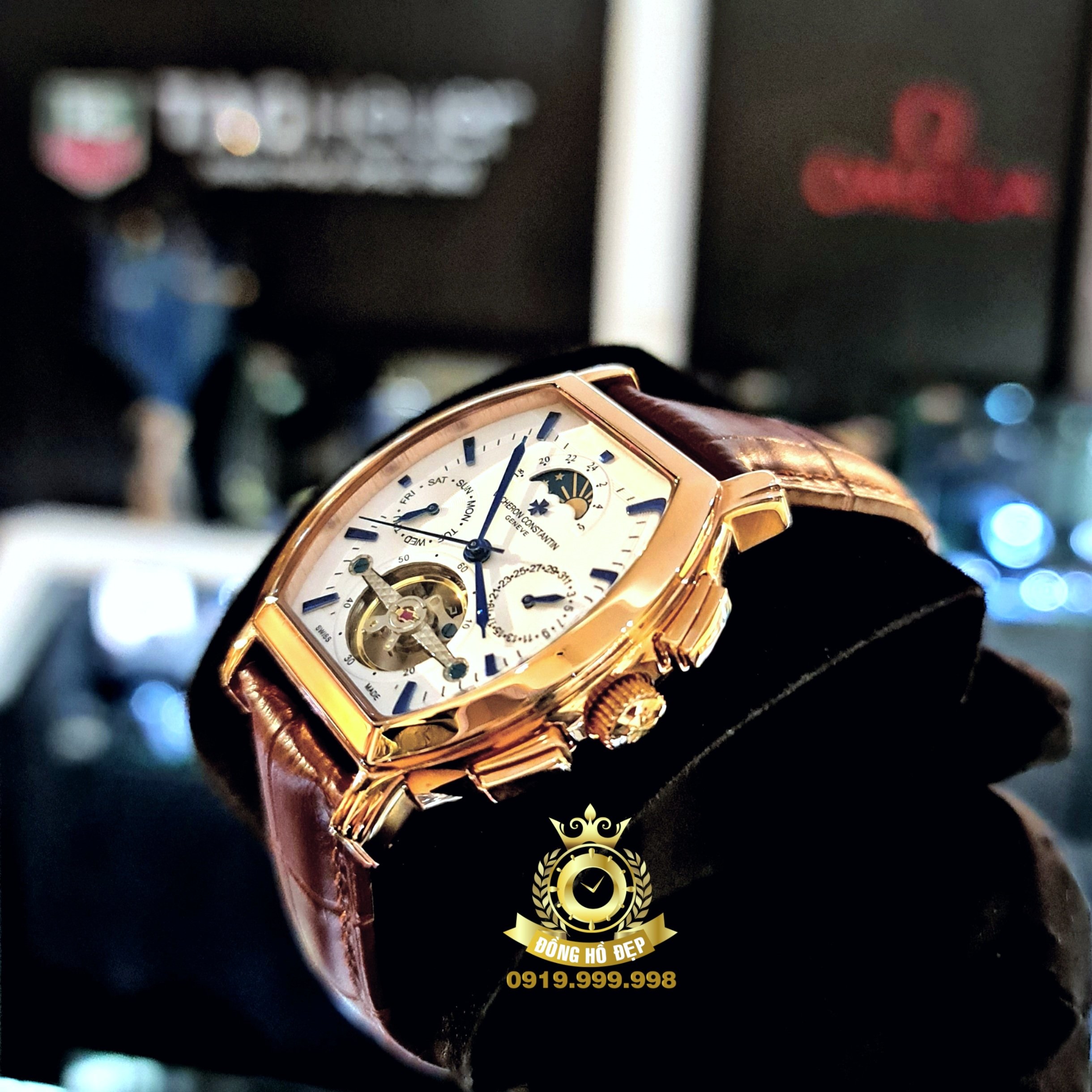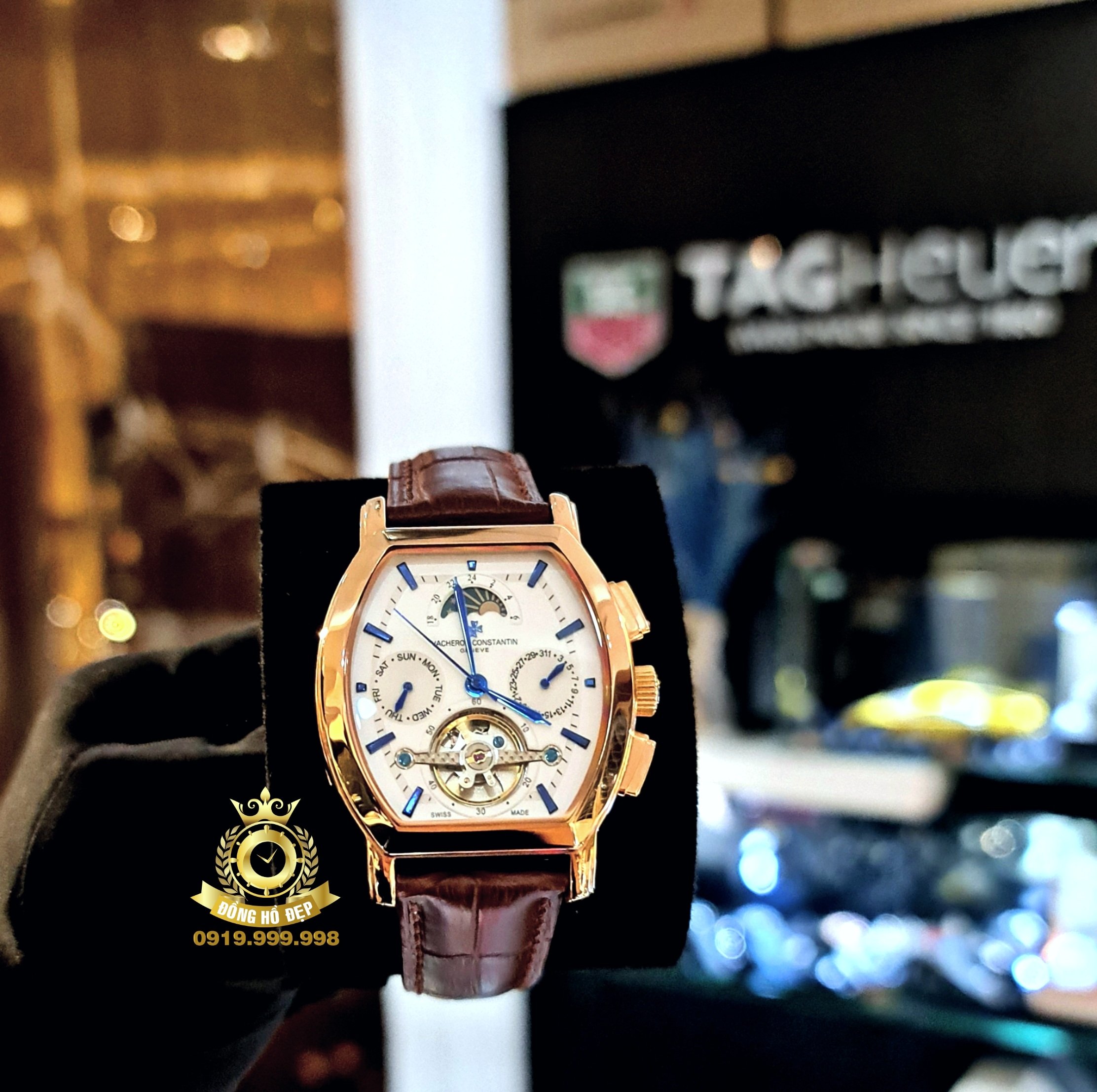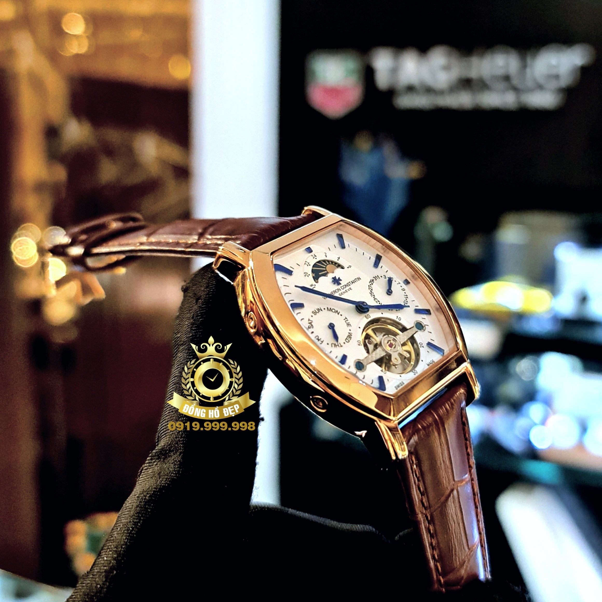 Đánh giá Vacheron lozenge tourbillion white blue gold Brown leather