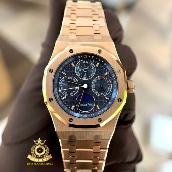 Audemars Piguet Royal Oak 26574OR Moonphase Rose-Gold Blue Dial.