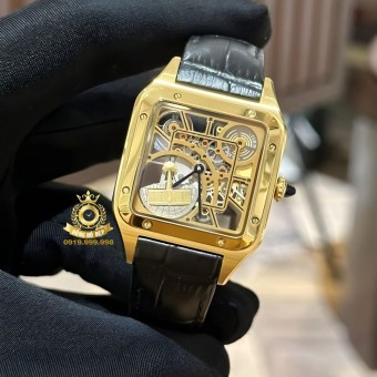 Cartier Santos Skeleton Gold Black Leather.