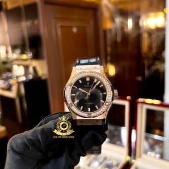 Hublot Classic Fusion King Gold Black Dial Diamonds 42mm.