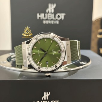 Hublot Classic Fusion Green Titanium Moissanite Dial.