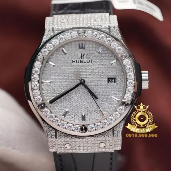 Hublot Classic Full Moisssanite JJF Dial Silver Black Rubber.