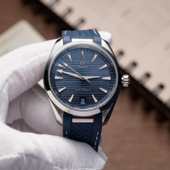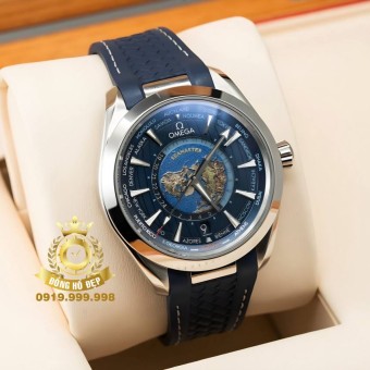 Omega Seamaster Aqua Terra World Time Chronometer Blue Rubber.