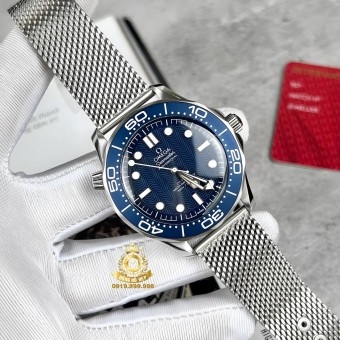 Omega Seamaster Diver 300M Blue Dial Steel Mesh.