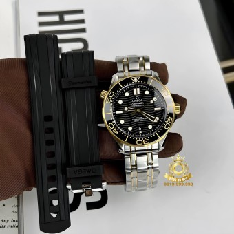 Omega Seamaster Diver 300m Co-Axial Master Chronometer Black Dial Gold-Yellow Demi.