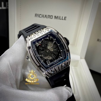 Richard Mille RM010 Silver Diamond Case Black Rubber.