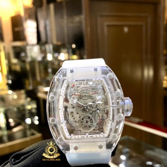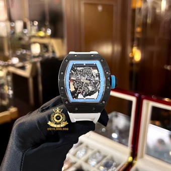 Richard Mille 055 Blue Dial White Rubber Strap Carbon Fiber Case