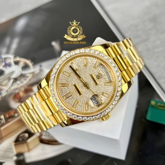 Rolex Day-Date Bọc Vàng Full Moissanite.