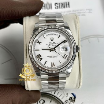 Rolex Day-Date 228235 White Dial La Mã Line Baguette Steel