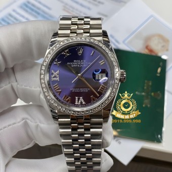 Rolex DateJust Mặt Xám Khói Cọc Số Đính Đá Steel.
