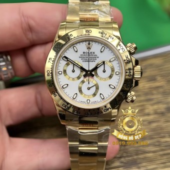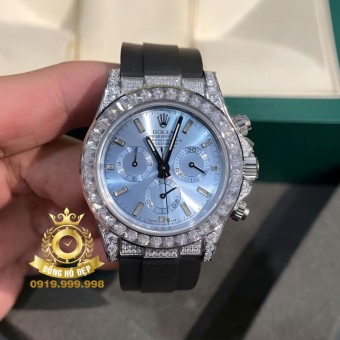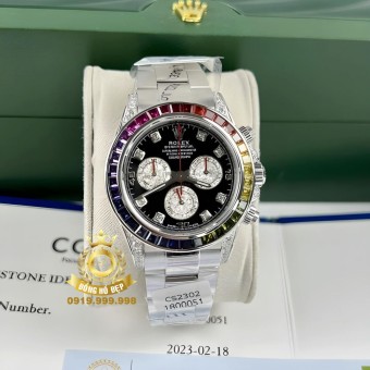 Rolex Cosmograph Daytona Rainbow Bọc Vàng Trắng Độ Moissanite Steel.