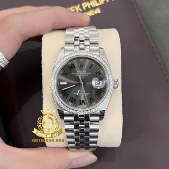 Rolex DateJust Mặt Xanh Dương Cọc Số Đính Đá Dây Oyster.