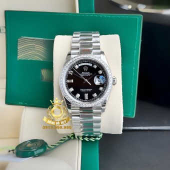 Rolex Day-Date Black Dial Line Diamond Steel.