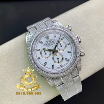 Rolex Cosmograph Daytona White Dial Full Diamonds Steel.