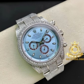 Rolex Cosmograph Daytona Blue Dial Full Diamonds Steel.