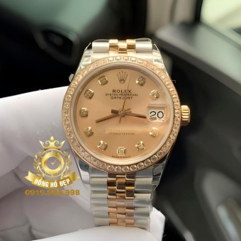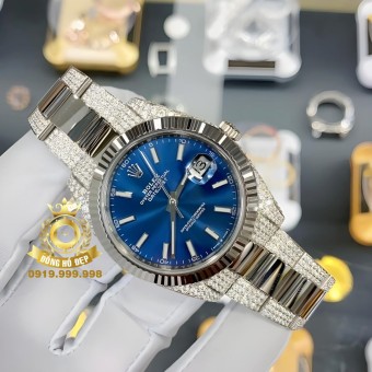 Rolex DateJust Độ Kim Cương Moissanite Mặt Số Blue.