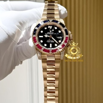 Rolex GMT-Master II 126755 SARU Bọc Vàng Moissanite Sapphire Ruby HongKong.
